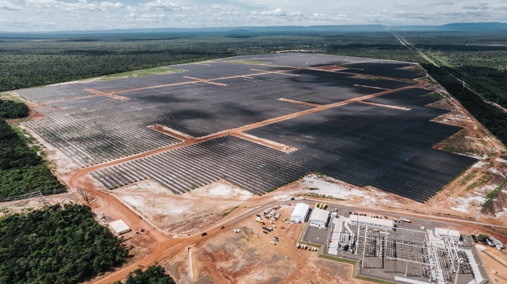 2024年6月7日,由中國國家電力投資集團(tuán)公司巴西公司投資并主導(dǎo)建設(shè)的巴西馬蘭加圖光伏電站舉行投產(chǎn)儀式。這是無人機(jī)拍攝的馬蘭加圖光伏電站。