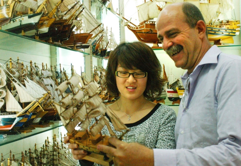2009年3月31日,一名巴西客商在浙江義烏國際商貿(mào)城采購工藝帆船。