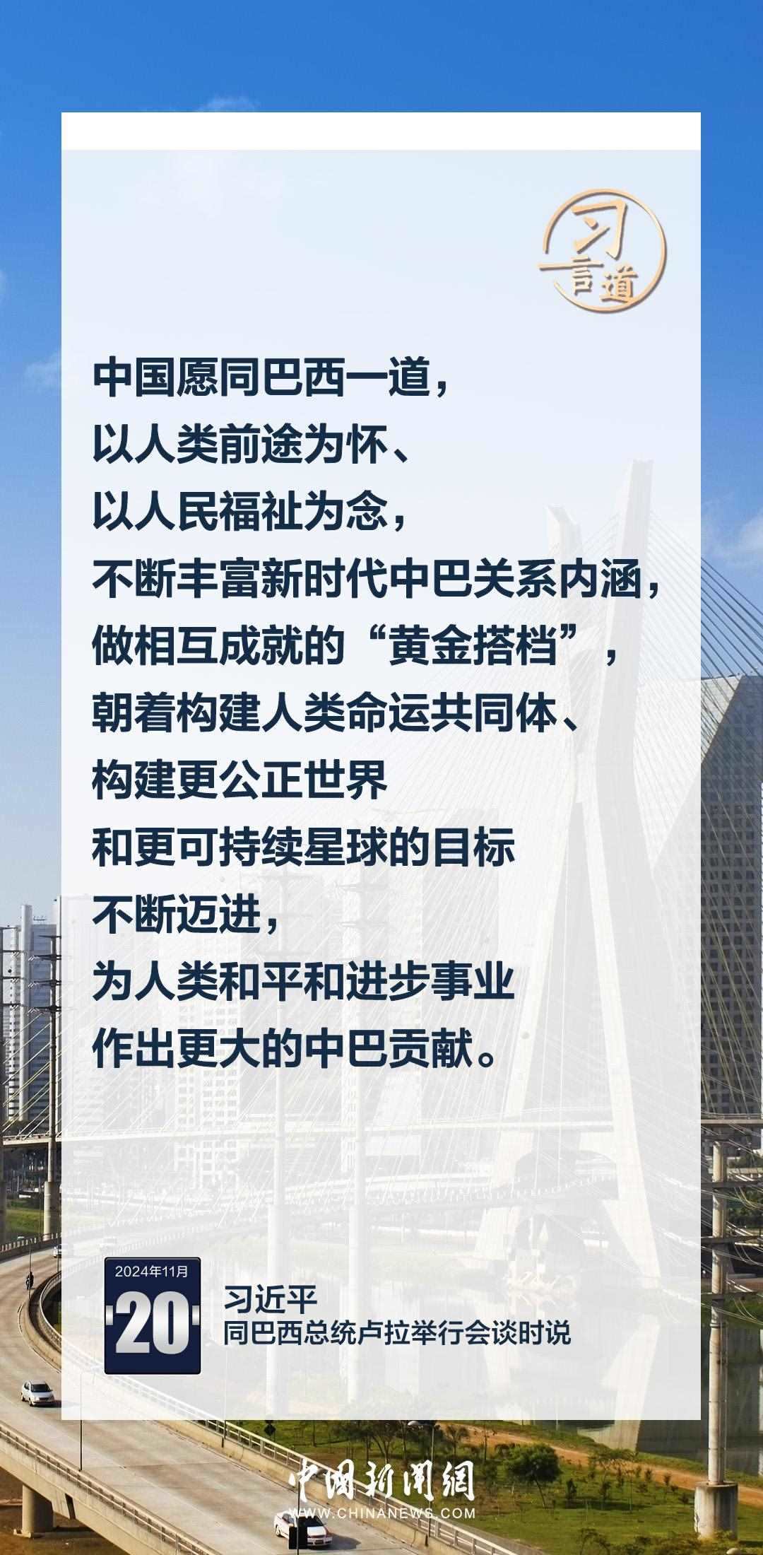 當(dāng)?shù)貢r(shí)間11月20日,中國(guó)國(guó)家主席習(xí)近平在巴西利亞總統(tǒng)官邸同巴西總統(tǒng)盧拉舉行會(huì)談。習(xí)近平指出——