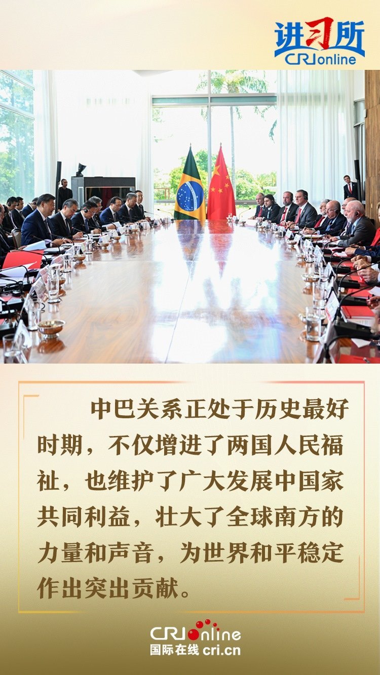 今年是中巴建交50周年。習近平指出,回首過去50年,中巴關(guān)系跨越山海,探索出發(fā)展中大國相互尊重、互利友好、合作共贏的正確相處之道。中方愿同巴方一道,以人類前途為懷、以人民福祉為念,不斷豐富新時代中巴關(guān)系內(nèi)涵,做相互成就的“黃金搭檔”,朝著構(gòu)建人類命運共同體、構(gòu)建更公正世界和更可持續(xù)星球的目標不斷邁進,為人類和平和進步事業(yè)作出更大貢獻。