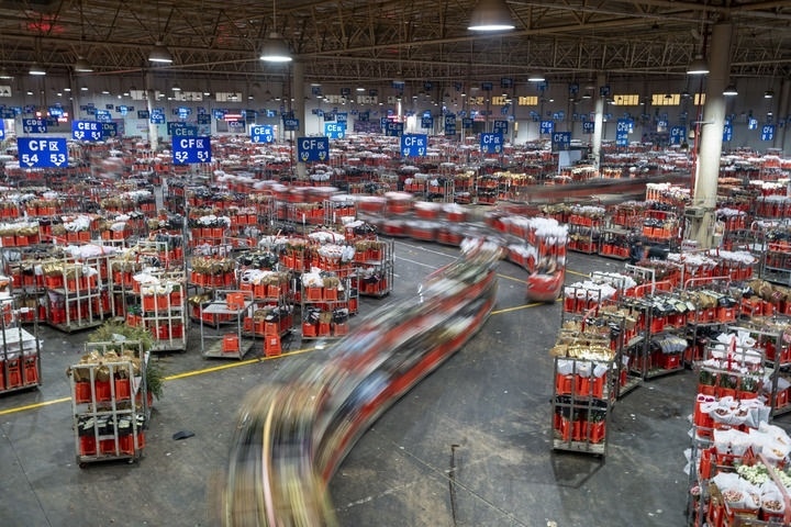 2023年1月31日,臺(tái)車在昆明國(guó)際花卉拍賣交易中心運(yùn)輸鮮花。新華社記者 陳欣波 攝