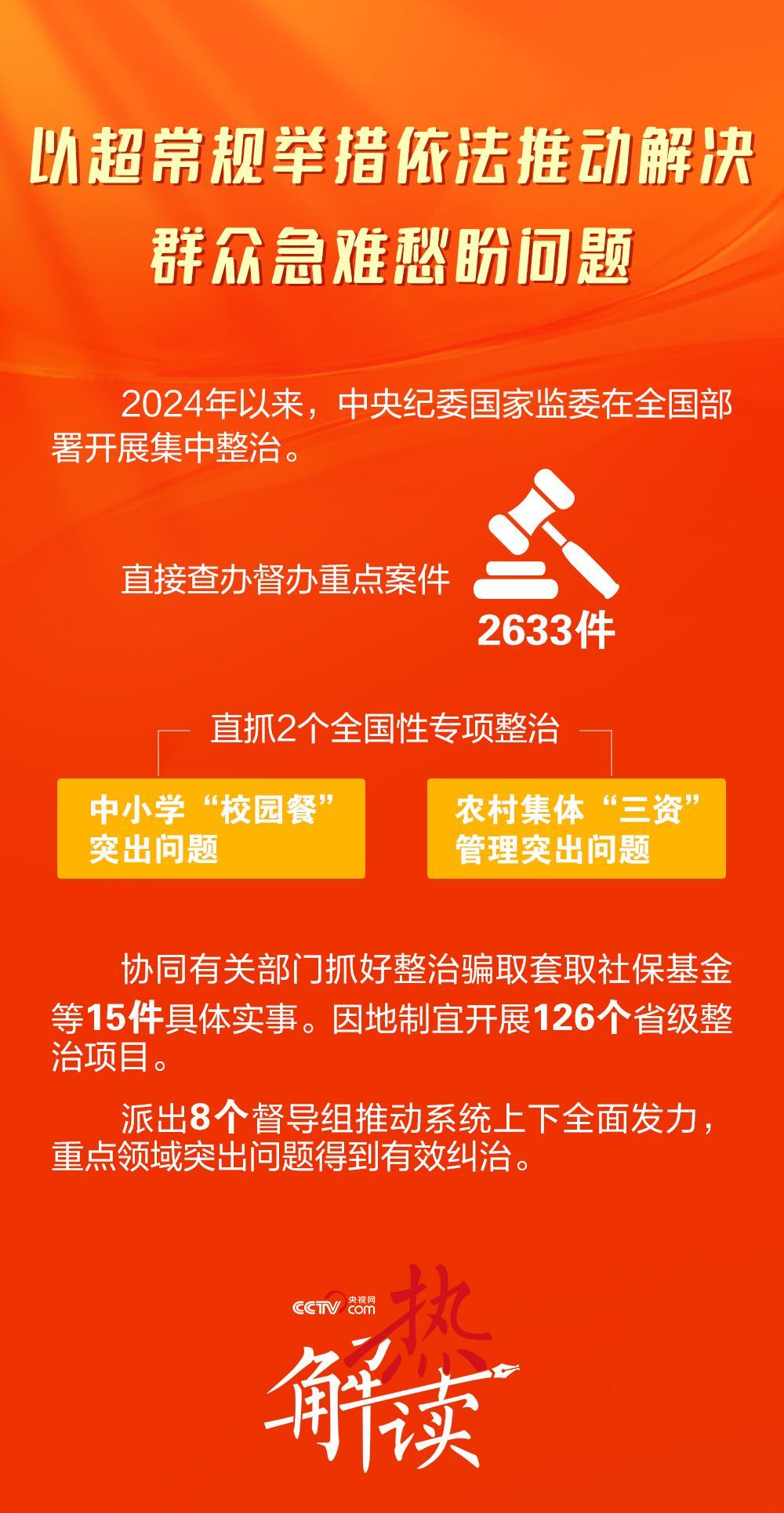 2024年1月8日,在二十屆中央紀(jì)委三次全會上,習(xí)近平總書記明確要求懲治“蠅貪蟻腐”,讓群眾有更多獲得感。全會強調(diào)瞄準(zhǔn)教育、就業(yè)、醫(yī)療等民生領(lǐng)域的痛點難點開展集中整治。此次召開的二十屆中央紀(jì)委四次全會,更加明確民生領(lǐng)域腐敗問題整治方向——聚焦“縣以下這一關(guān)鍵環(huán)節(jié)、薄弱環(huán)節(jié)”,直達正風(fēng)肅紀(jì)反腐“最后一公里”。