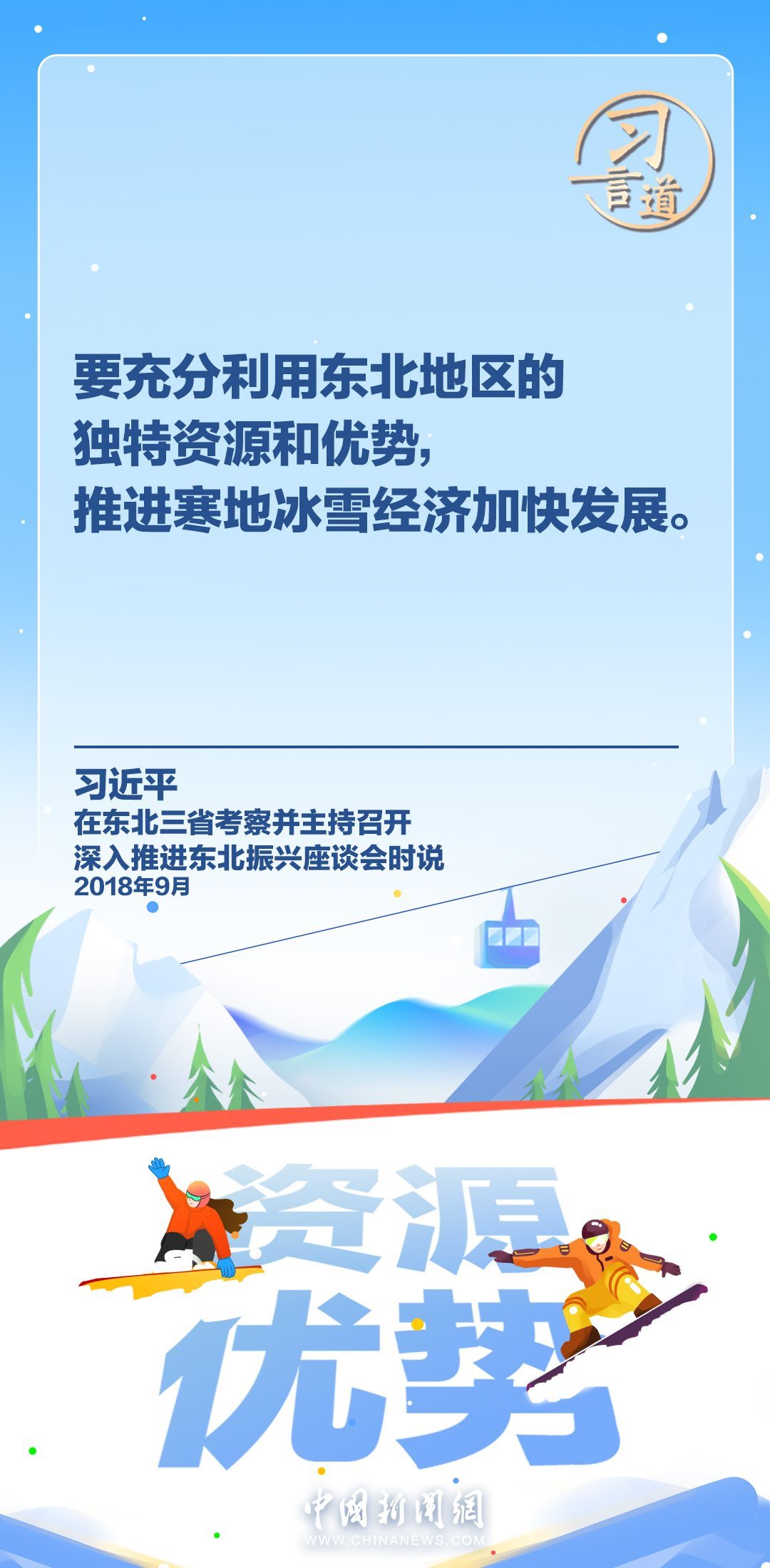 冰天雪地也是金山銀山。習(xí)近平總書(shū)記高度重視發(fā)展冰雪經(jīng)濟(jì),多次作出重要指示批示,強(qiáng)調(diào)冰雪產(chǎn)業(yè)是一個(gè)大產(chǎn)業(yè),也是一個(gè)朝陽(yáng)產(chǎn)業(yè)。