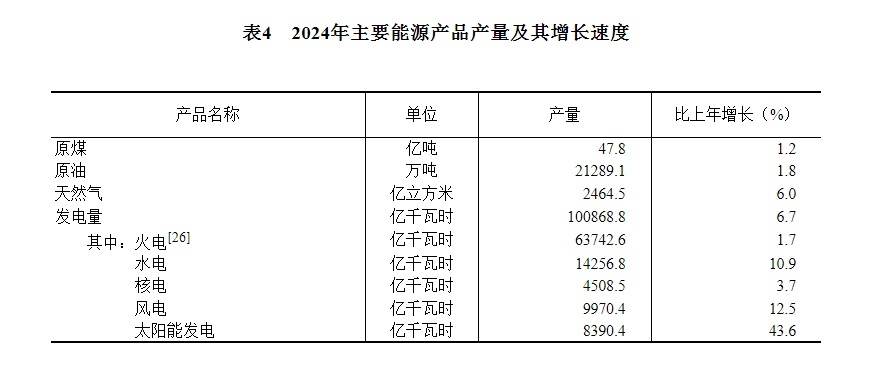 初步核算,全年一次能源生產(chǎn)總量[25]49.8億噸標(biāo)準(zhǔn)煤,比上年增長(zhǎng)4.6%。