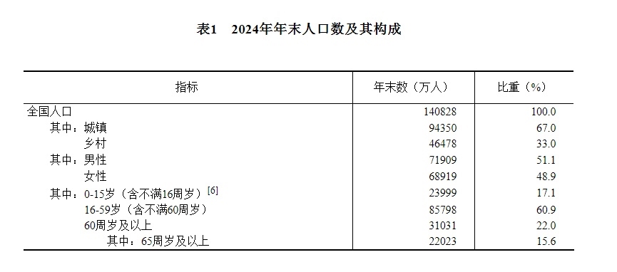 [6]2024年年末,0-14歲(含不滿15周歲)人口為22240萬(wàn)人,15-59歲(含不滿60周歲)人口為87557萬(wàn)人。