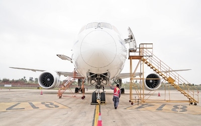 “面前這個大家伙,是來自蒙古航空的波音B787—9飛機,1月中旬飛到海南自貿(mào)港一站式飛機維修產(chǎn)業(yè)基地接受專項維修服務(wù)。我們要加緊做好發(fā)動機換發(fā)、專項維修服務(wù)和飛機封存等工作。”楊榮川介紹。