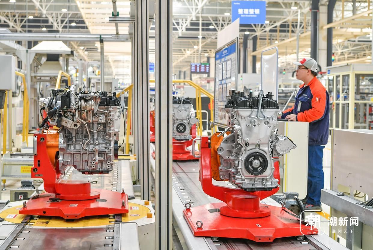 義烏吉利發(fā)動機(jī)工廠的生產(chǎn)車間內(nèi),技術(shù)工人在智能化裝配流水線上趕制油電混動汽車發(fā)動機(jī)的生產(chǎn)訂單。記者 金思成 通訊員 時寬兵 攝