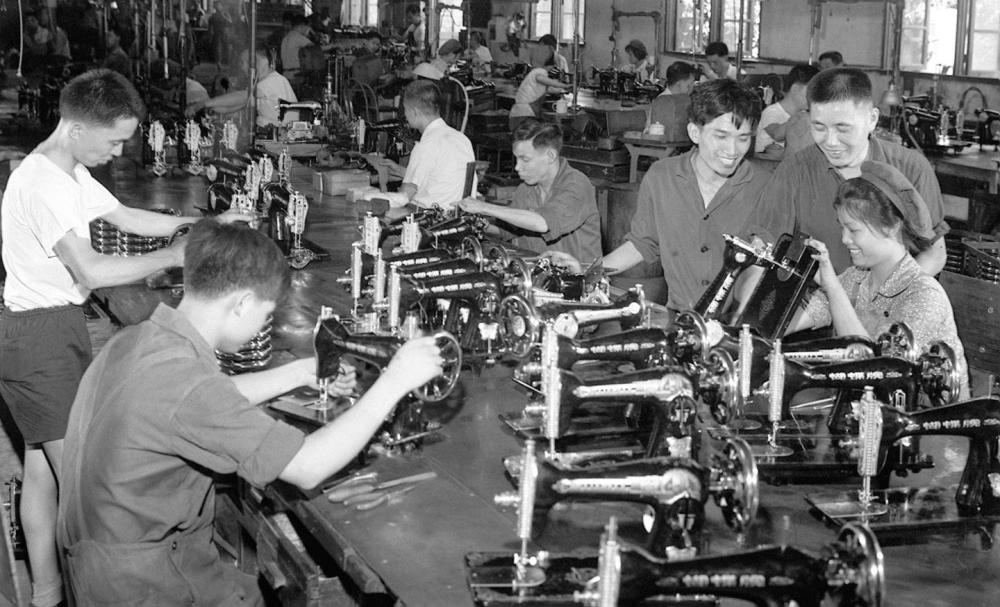 1970年,越南實(shí)習(xí)生在上海東方紅縫紉機(jī)廠學(xué)習(xí)裝配技術(shù)。
