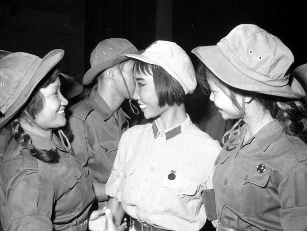 1967年6月30日,越南南方解放軍歌舞團(tuán)的演員在北京觀看芭蕾舞劇《紅色娘子軍》。這是中越兩國(guó)演員在一起交談。
