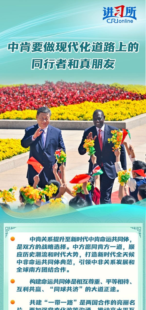 4月24日,中國國家主席習(xí)近平同肯尼亞總統(tǒng)魯托在北京舉行會(huì)談,兩國元首一致同意將雙邊關(guān)系定位提升至新時(shí)代中肯命運(yùn)共同體。習(xí)近平表示,構(gòu)建命運(yùn)共同體是相互尊重、平等相待、互利共贏、“同球共濟(jì)”的大道正途。中肯雙方要做現(xiàn)代化道路上的同行者和真朋友。