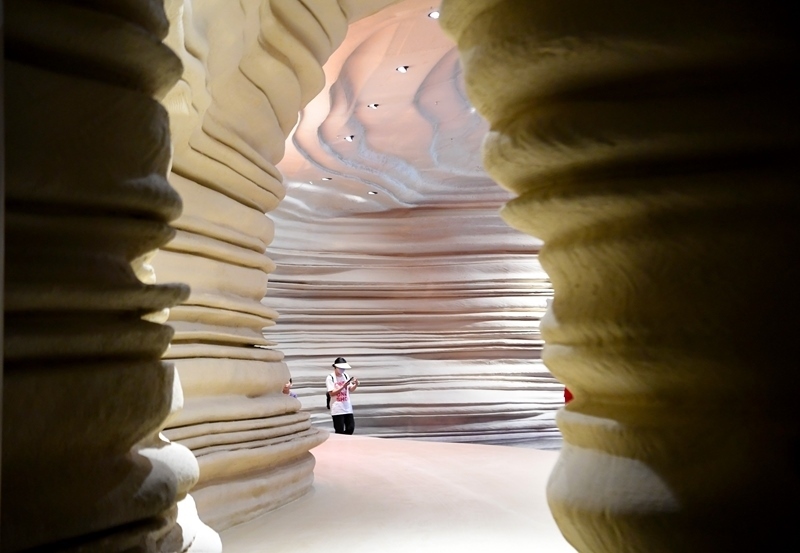 6月14日,參觀者在大河村遺址博物館沉浸式參觀體驗(yàn)。