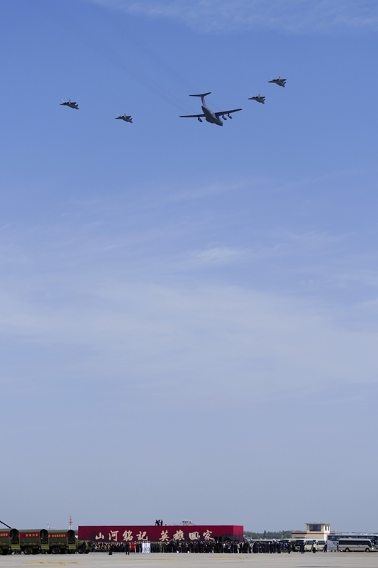 9月12日,第十二批在韓中國(guó)人民志愿軍烈士遺骸回國(guó)。這是在沈陽(yáng)桃仙國(guó)際機(jī)場(chǎng),接運(yùn)烈士遺骸回國(guó)的運(yùn)-20專機(jī)在4架殲-20飛機(jī)伴飛護(hù)航下即將降落。