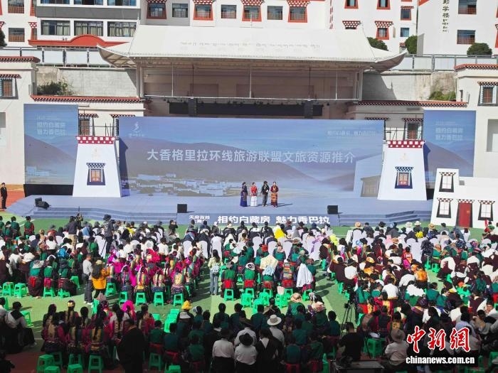 9月20日,四川甘孜鄉(xiāng)城,“2025大香格里拉環(huán)線·鄉(xiāng)城白色灌禮文化周”開(kāi)幕式上,大香格里拉環(huán)線旅游聯(lián)盟文旅資源推介。記者 張浪 攝