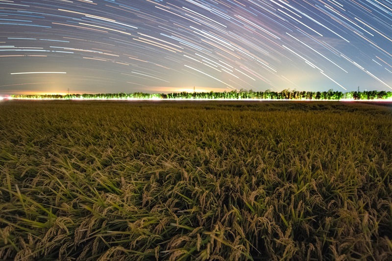 時下正值“北大倉”豐收季節(jié)。田野里各種農(nóng)作物陸續(xù)成熟,空氣里飄蕩著收獲的氣息。夜幕降臨,繁星閃爍,寧靜的星光下,鋪展開了一幅幅浪漫的豐收畫卷。
