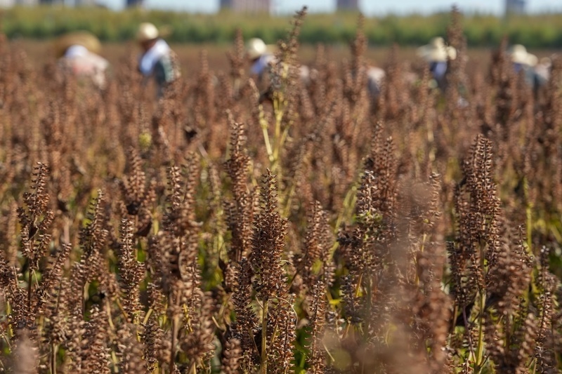 9月23日,黑龍江省佳木斯市樺南縣舉辦慶祝中國農(nóng)民豐收節(jié)活動,工作人員進(jìn)行紫蘇收獲展示。