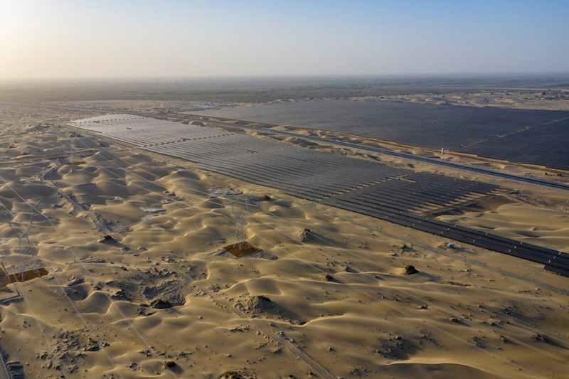 昔日的戈壁荒漠,如今由太陽能光伏板匯聚成“藍(lán)色海洋”,由風(fēng)力發(fā)電機(jī)組成“白色森林”,正孕育著無限“風(fēng)光”。