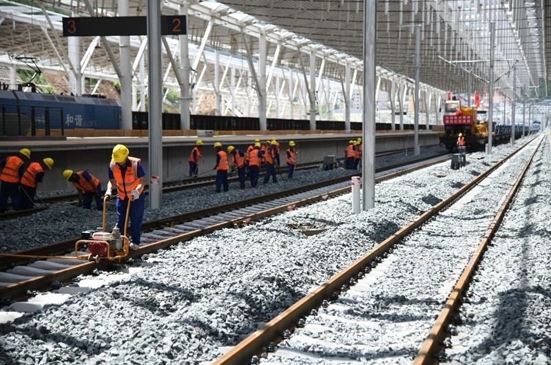 7月1日,中鐵十一局工人在延安站施工。