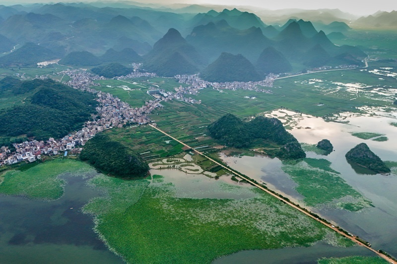 7月15日拍攝的普者黑景區(qū)風光(無人機照片)。