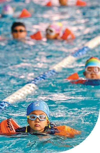 孩子們在學習游泳。孫中喆攝