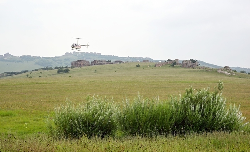7月24日,空中觀光直升機(jī)從內(nèi)蒙古自治區(qū)赤峰市克什克騰旗阿斯哈圖石林上空飛過(guò)。
