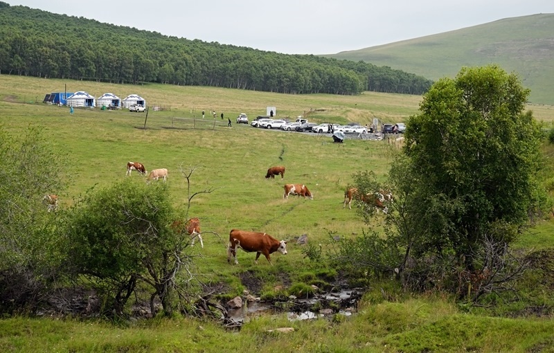7月24日,自駕游客的車輛停泊在內(nèi)蒙古自治區(qū)赤峰市克什克騰旗草原的一處牧家樂(lè)。