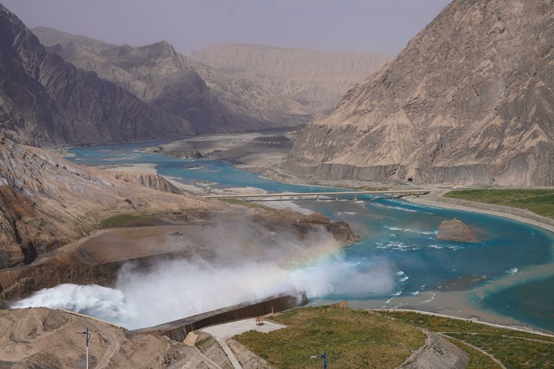 阿爾塔什水利樞紐工程位于新疆維吾爾自治區(qū)喀什地區(qū)莎車縣霍什拉甫鄉(xiāng)和克孜勒蘇柯爾克孜自治州阿克陶縣庫斯拉甫鄉(xiāng)交界處,是葉爾羌河山區(qū)控制性水利樞紐工程,總庫容22.49億立方米,設(shè)計(jì)年發(fā)電量21.86億千瓦時(shí),是新疆目前規(guī)模最大的水利樞紐工程。該工程兼顧生態(tài)、防洪、灌溉、發(fā)電等功能,2021年8月建成投產(chǎn)以來,平均每年向塔里木河干流生態(tài)補(bǔ)水約3.3億立方米。該工程建成后,徹底解決了葉爾羌河千年水患,每年減少約1000萬人次的防洪投入;同時(shí)為南疆提供清潔能源,改善了南疆的電力短缺狀況。