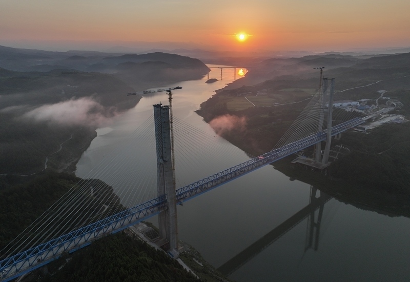 8月18日,由中鐵十一局承建的西安至十堰高速鐵路(簡稱“西十高鐵”)漢江特大橋鋼桁梁順利合龍。漢江特大橋位于湖北省十堰市,跨越丹江口水庫庫區(qū),是西十高鐵全線控制性工程,全長917.45米,主跨420米。本次合龍的鋼桁梁全長840米、寬11米、高9.4米,采用漸變?nèi)氰焓浇Y(jié)構(gòu),最重桁節(jié)36.4噸。