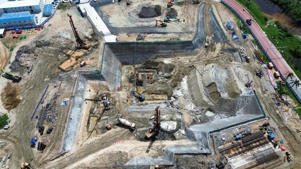 “目前,導(dǎo)流槽土方與支護(hù)工程進(jìn)度過半,折流段地基處理按計(jì)劃同步跟進(jìn),前置設(shè)備間及避雷塔的樁基工程也已全面展開,進(jìn)展符合預(yù)期。”中建五局項(xiàng)目負(fù)責(zé)人韓慶煒介紹道。