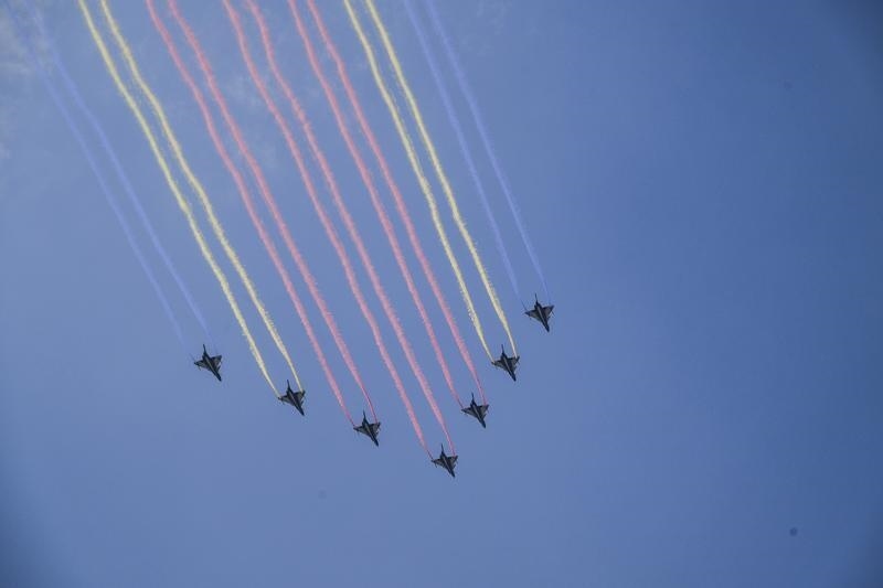 9月3日,紀(jì)念中國人民抗日戰(zhàn)爭暨世界反法西斯戰(zhàn)爭勝利80周年大會在北京隆重舉行。這是殲擊機梯隊接受檢閱。