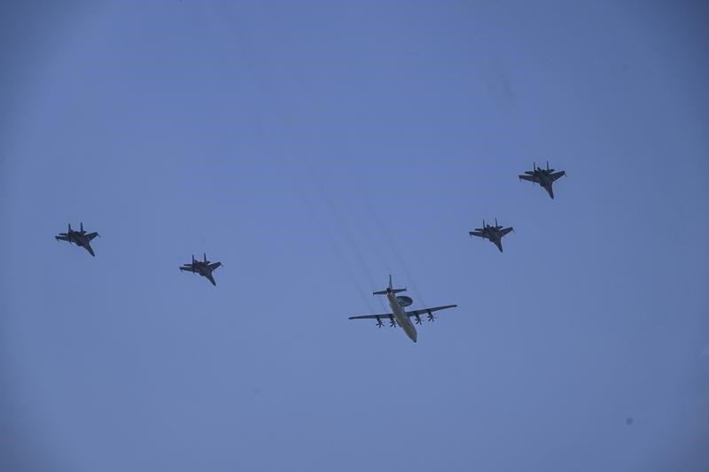 9月3日,紀(jì)念中國人民抗日戰(zhàn)爭暨世界反法西斯戰(zhàn)爭勝利80周年大會在北京隆重舉行。這是預(yù)警指揮機梯隊接受檢閱。