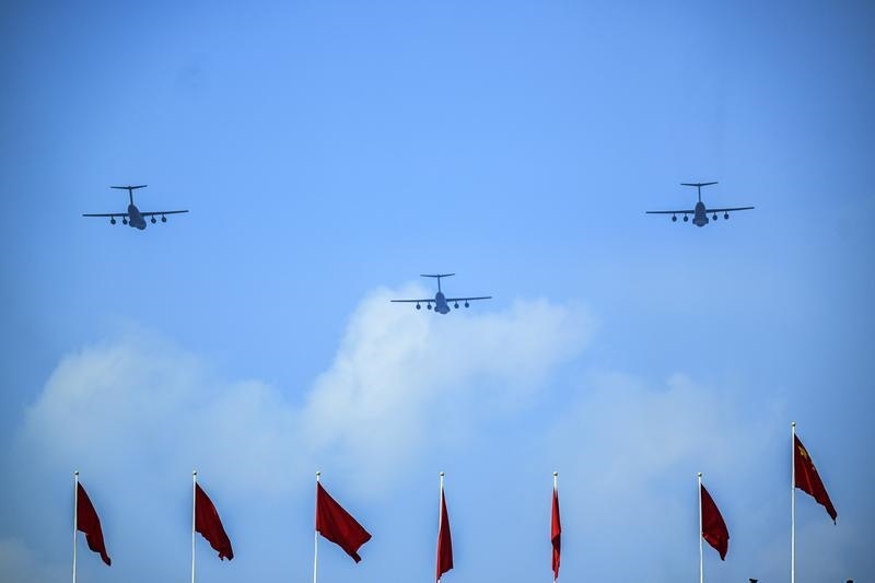 9月3日,紀(jì)念中國人民抗日戰(zhàn)爭暨世界反法西斯戰(zhàn)爭勝利80周年大會在北京隆重舉行。這是運輸機梯隊接受檢閱。