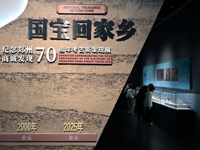 10月3日,觀眾在鄭州商代都城遺址博物院參觀“國寶回家鄉(xiāng)——紀(jì)念鄭州商城發(fā)現(xiàn)70周年考古新發(fā)現(xiàn)展”。