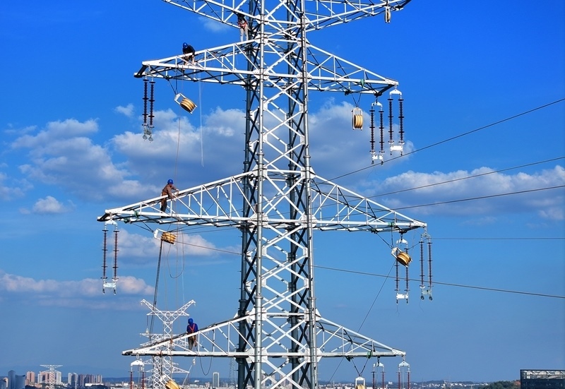 10月3日,在湖南省衡陽市雁峰區(qū)岳屏鎮(zhèn),施工人員在真武-麻塘220千伏線路改造工程項(xiàng)目開展架線施工作業(yè) (無人機(jī)照片)。