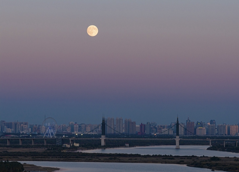 10月6日在黑龍江省哈爾濱市拍攝的“超級月亮”。