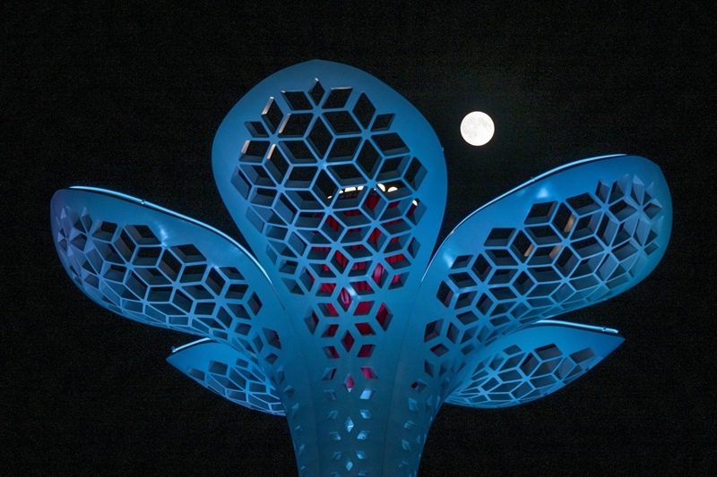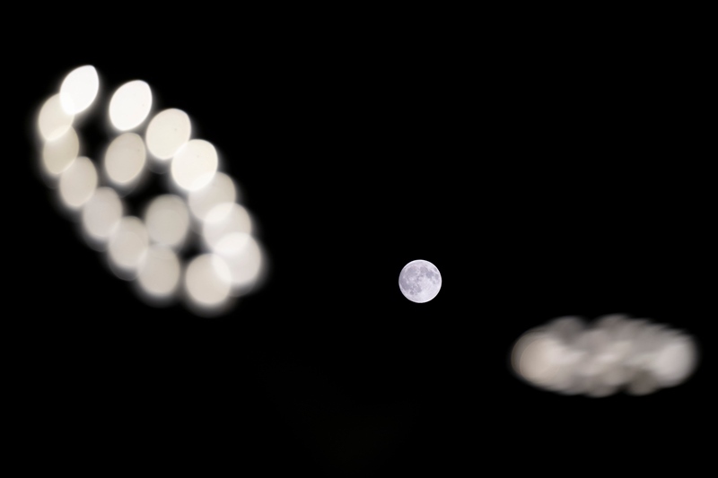 10月6日在黑龍江省哈爾濱大劇院拍攝的中秋滿月(無人機(jī)照片)。