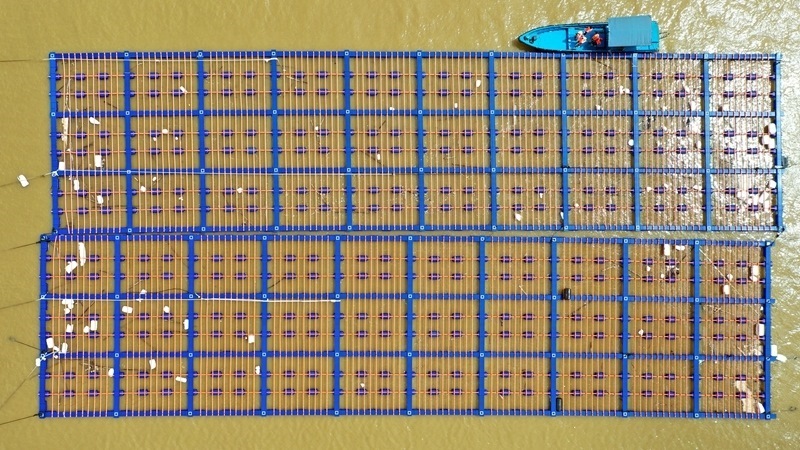 10月7日,一艘修補(bǔ)船開往茅尾海修補(bǔ)受損蠔排。
