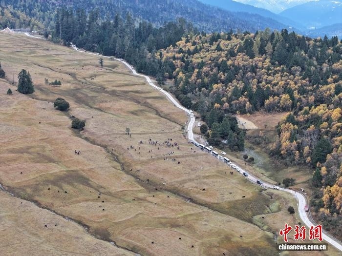 10月28日,魯朗高山牧場(無人機(jī)航拍)。貢嘎來松 攝
