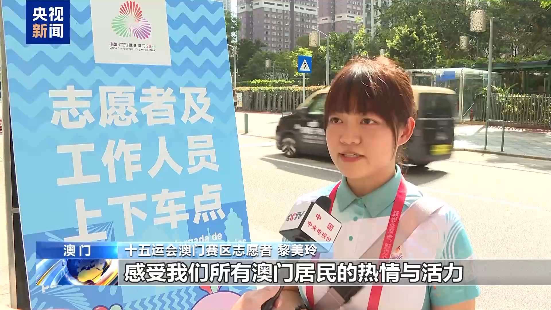 十五運(yùn)會(huì)澳門賽區(qū)志愿者 黎美玲:我本身是一名小學(xué)老師,這次很開心以志愿者的身份參與在家門口舉辦的全運(yùn)會(huì)賽事的服務(wù)工作。我們已經(jīng)都準(zhǔn)備好了,歡迎各地的朋友來到澳門,感受激情全運(yùn)會(huì)和活力大灣區(qū),感受我們所有澳門居民的熱情與活力。