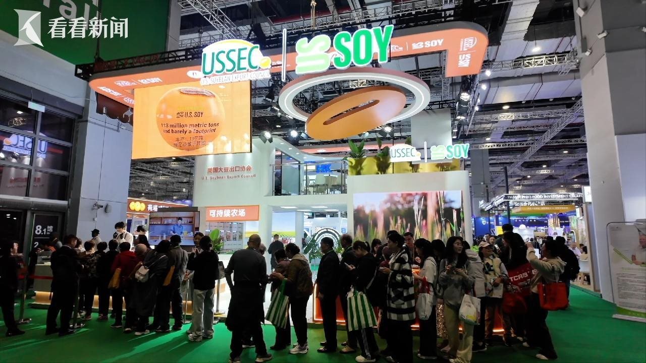 蘇健說的不是客套話。進(jìn)博會(huì)一開始,他的行程就滿滿當(dāng)當(dāng)——開館剪彩、客商對接、媒體專訪。他的身后,是一群帶著中文名片、中文宣傳資料的豆農(nóng),賣力帶貨。“正如大家在現(xiàn)場看到的,我們可以把大豆加工成大豆油,這種油品更適合高溫烹飪?!泵绹罐r(nóng)蓋思凱說。