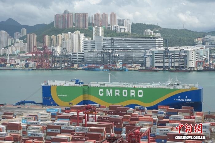 2025年9月28日,全球首艘9300CEU(標(biāo)準(zhǔn)車位)甲醇雙燃料動(dòng)力滾裝船“港榮”輪(“CM HONG KONG”輪)首航香港儀式在香港舉行。圖為“港榮”輪。(資料圖)  中新網(wǎng)記者 陳永諾 攝