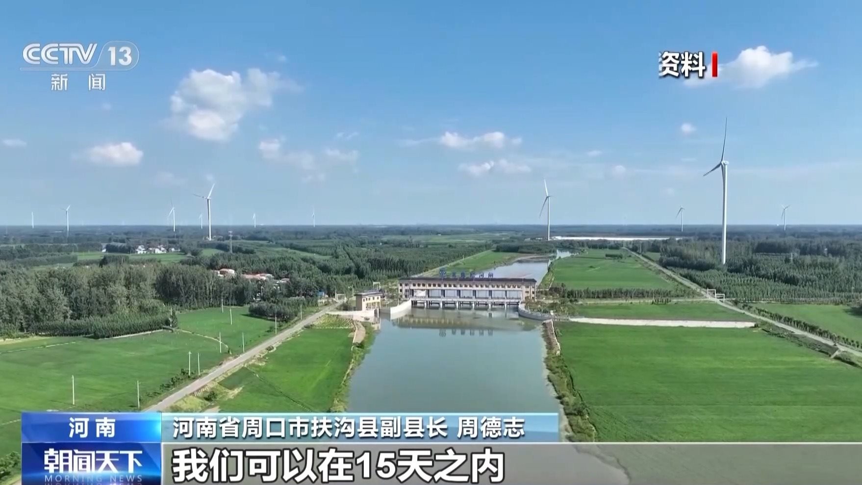 河南省周口市扶溝縣副縣長(zhǎng) 周德志:發(fā)生旱情的時(shí)候,我們可以在15天之內(nèi),把全縣的干支渠蓄滿(mǎn)水,最高時(shí)候可達(dá)到7000萬(wàn)立方米,有效緩解旱情。汛情的時(shí)候,我們兩天之內(nèi)可以把田里的水全部排空,真正能做到旱能澆,澇能排。