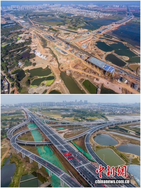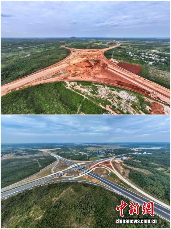 2025年12月18日,海南自由貿(mào)易港正式啟動全島封關(guān)。近年來,海南自貿(mào)港建設(shè)在利好政策帶動下不斷刷新“自貿(mào)港速度”,一個個重大項目、重點園區(qū)拔地而起,直觀呈現(xiàn)海南自貿(mào)港的蓬勃生機(jī)。這里正成為中國對外開放的新前沿、互利合作的新熱土和推動經(jīng)濟(jì)全球化的新引擎。上資料圖為2021年2月6日正在建設(shè)中的G15沈海高速公路??诙雾椖亢P慊ネǎ沦Y料圖為2022年12月28日G15沈海高速公路??诙谓ǔ赏ㄜ?。(拼版圖,無人機(jī)照片)