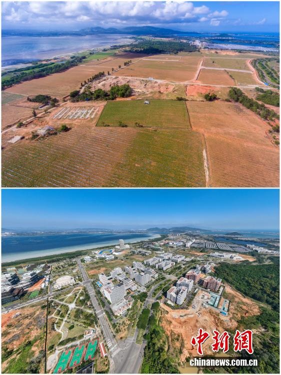 2025年12月18日,海南自由貿(mào)易港正式啟動全島封關(guān)。近年來,海南自貿(mào)港建設(shè)在利好政策帶動下不斷刷新“自貿(mào)港速度”,一個個重大項目、重點園區(qū)拔地而起,直觀呈現(xiàn)海南自貿(mào)港的蓬勃生機(jī)。這里正成為中國對外開放的新前沿、互利合作的新熱土和推動經(jīng)濟(jì)全球化的新引擎。上資料圖為2020年6月18日俯瞰尚未開發(fā)的海南陵水黎安國際教育創(chuàng)新試驗區(qū)所在地,下資料圖為2025年11月22日已初具規(guī)模的海南陵水黎安國際教育創(chuàng)新試驗區(qū)。(拼版圖,無人機(jī)照片)