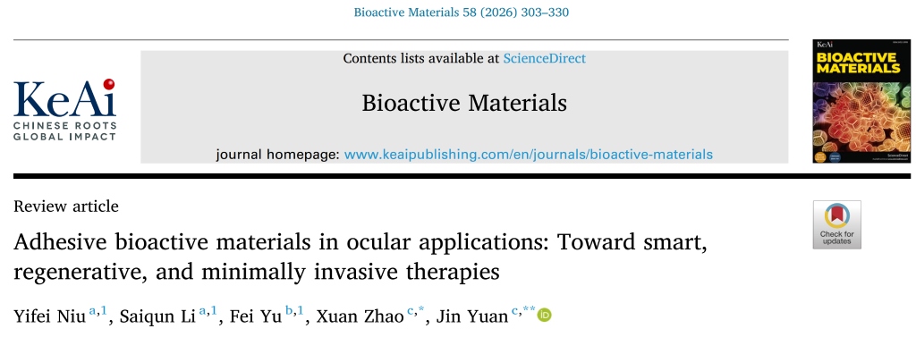 近日,首都醫(yī)科大學附屬北京同仁醫(yī)院院長袁進教授團隊在新一代眼科“生物膠水”研究領域取得重要進展,有望破解傳統眼科手術縫線帶來的一系列風險難題,也為這類材料從實驗室走向臨床應用提供了清晰的路徑指引。該研究論文發(fā)表在國際學術期刊《生物活性材料》上。