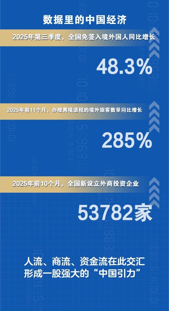 國(guó)家移民管理局發(fā)布的數(shù)據(jù)顯示,2025年第三季度,全國(guó)免簽入境外國(guó)人同比增長(zhǎng)48.3%。這一亮眼數(shù)據(jù)不僅是“中國(guó)游”熱度的直接印證,更彰顯了中國(guó)擴(kuò)大對(duì)外開放的顯著成效,世界正在看到一個(gè)開放、包容、充滿活力的中國(guó)。