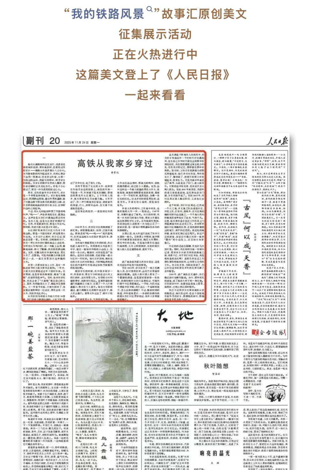 “我的鐵路風景”主題宣傳活動,讓人民當主角,以鐵路線為紐帶,從旅客和網(wǎng)友的角度充分展現(xiàn)了中國式現(xiàn)代化建設新成就、美麗中國新畫卷、人民幸福生活新圖景和文明出行新風尚,與“十四五”即將圓滿收官形成同頻共振。