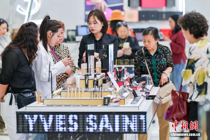 1月18日,顧客在cdf??趪?guó)際免稅城選購化妝品。海南自貿(mào)港封關(guān)首月,離島免稅市場(chǎng)火爆。 中新網(wǎng)記者 駱云飛 攝