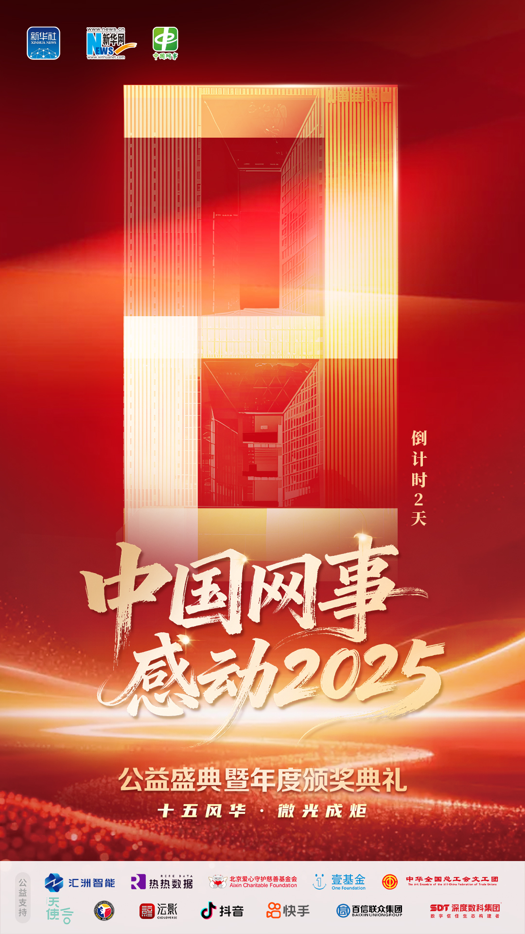 新華網(wǎng)北京1月26日電(記者高海英)十五風(fēng)華,微光成炬?!爸袊W(wǎng)事·感動2025”公益盛典暨年度頒獎典禮將于2026年1月28日在北京國家金融信息大廈溫情啟幕,屆時將揭曉“中國網(wǎng)事·感動2025”十大年度網(wǎng)絡(luò)人物。