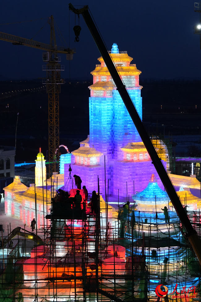 冰為磚、水為泥、燈為飾,打基礎(chǔ)、做鋼架、砌冰墻……最忙時(shí),曲超和5500余名工人夜以繼日,在攝氏零下的氣溫中“玩冰嬉雪”,睫毛上全是凝結(jié)的霜花?!氨┦嵌虝旱乃囆g(shù),一旦進(jìn)入冰雪施工季,都得緊抓時(shí)間,盡量把施工時(shí)間壓縮到最短,這樣留給游客欣賞的時(shí)間就會(huì)更長?!鼻f。
