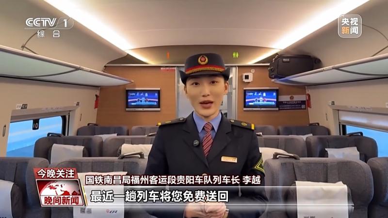 國(guó)鐵南昌局福州客運(yùn)段貴陽(yáng)車隊(duì)列車長(zhǎng) 李越:您只需要找到列車的工作人員,出示身份證件,列車長(zhǎng)核驗(yàn)好身份信息,開(kāi)具客運(yùn)記錄。又有旅客問(wèn),我下車的時(shí)候該找誰(shuí)呢,您先別著急,列車長(zhǎng)會(huì)在最近的前方站將您交接下車,車站的工作人員會(huì)安排最近一趟列車將您免費(fèi)送回。